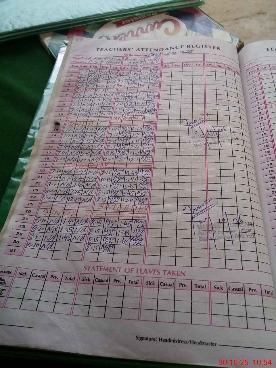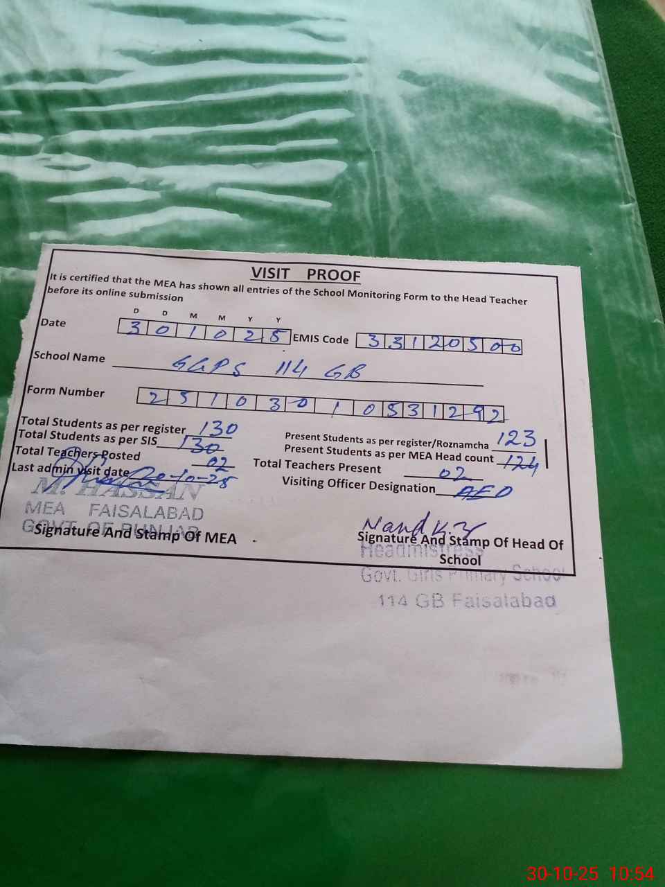 | Attendance Register | Head Teacher | MEA with School | Visit Proof |