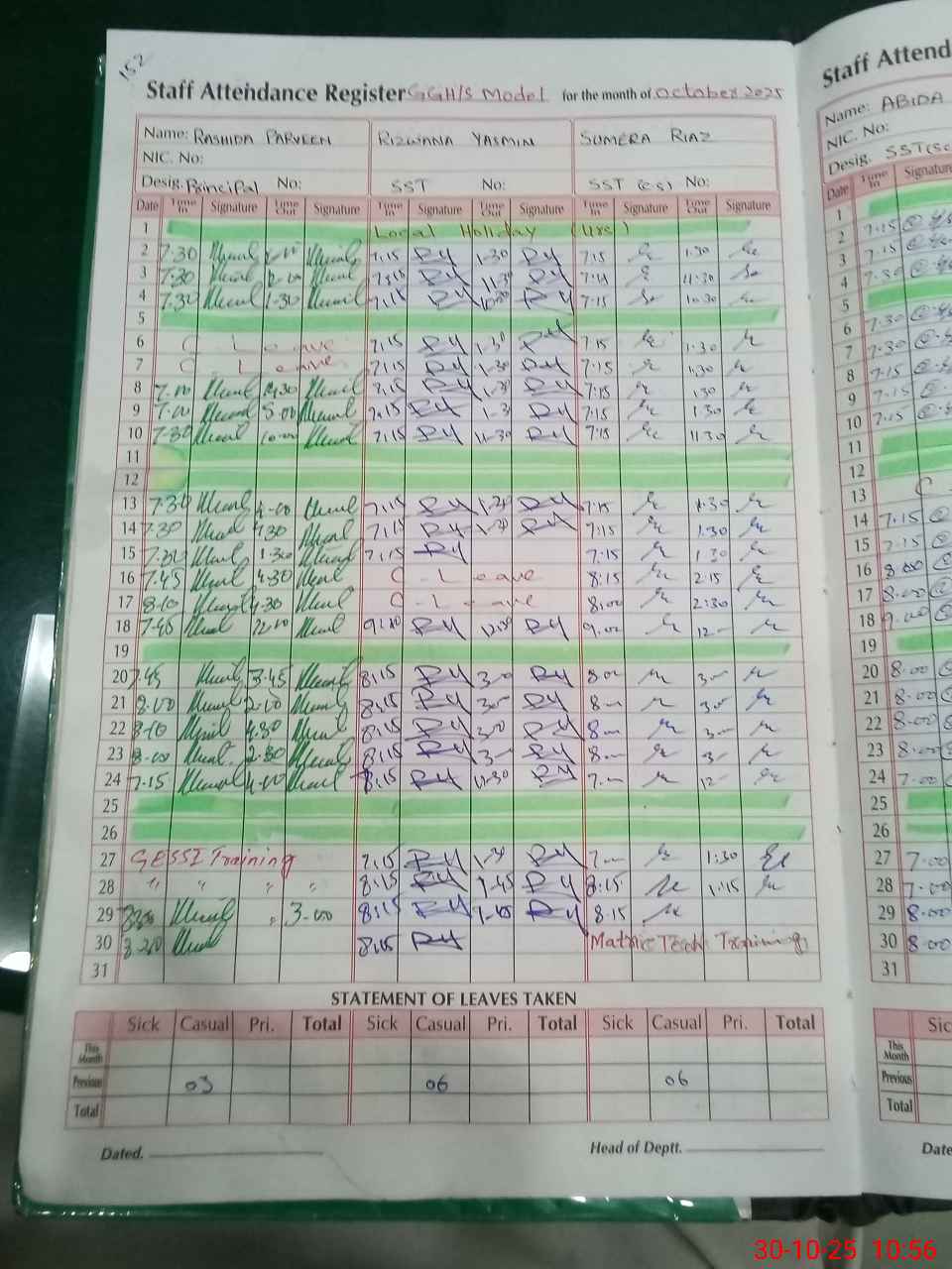 | Leave | Duty | Absent | Maternity | Medical | Ex- Pak |