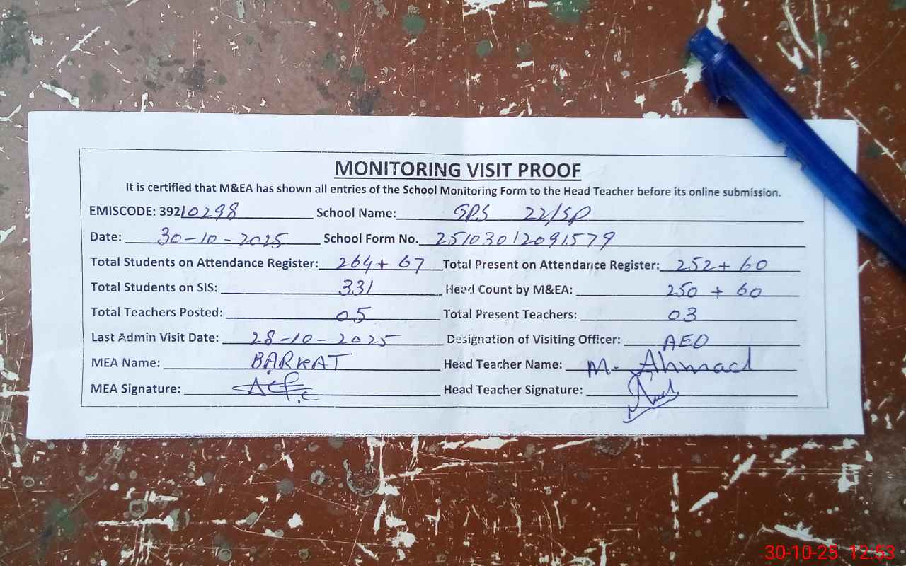 | EMIS Code: 39210298 | Name of School: GPS 22 SP | |||