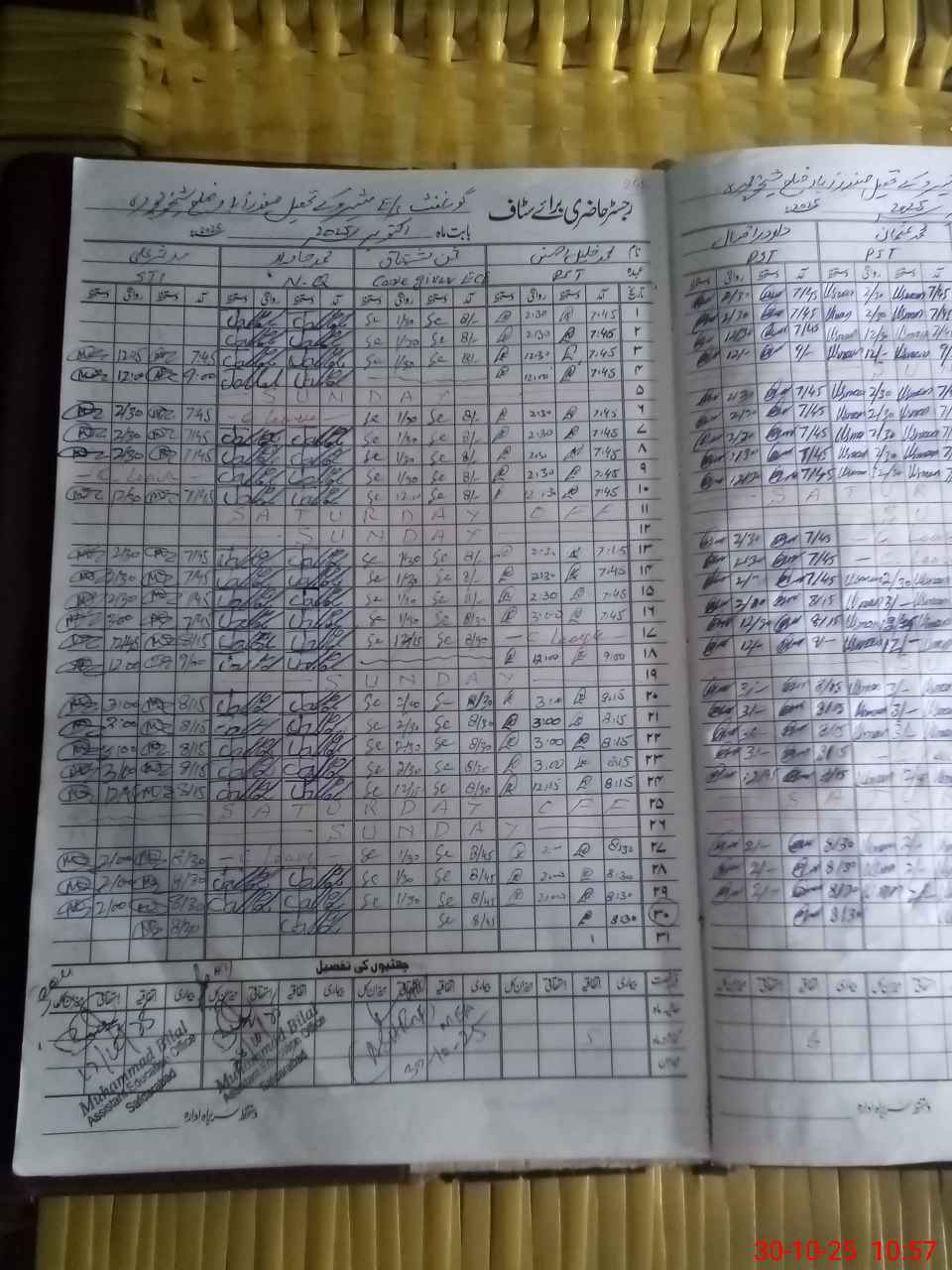 | CNIC | Full Name | Designation | R/C | Absence During Last Calender Month |