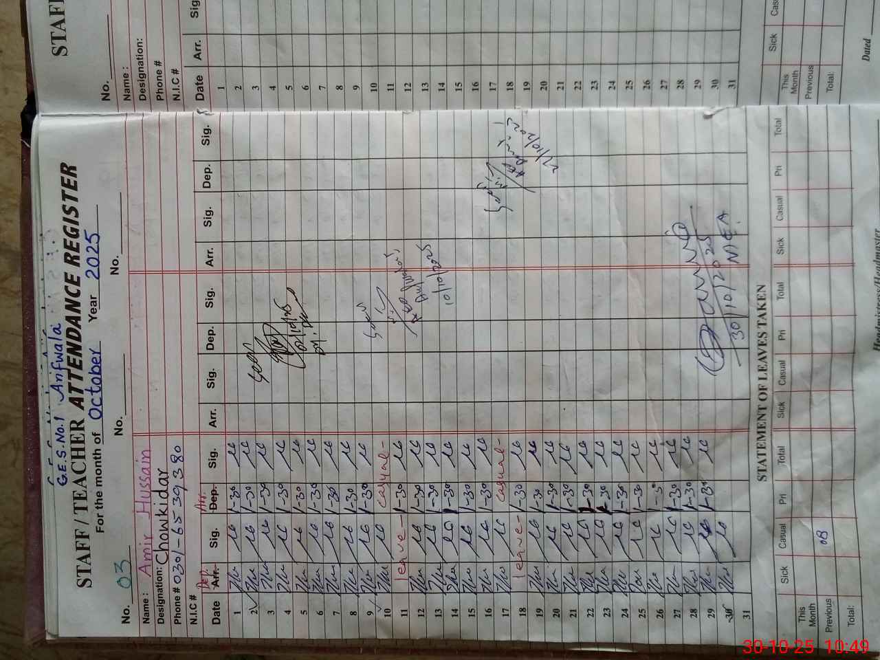 | Name: HA**** NA**** Designation: (School Headmaster's/Headmistress's) SST (GENERAL) Phone/Cell Number: 03**** |