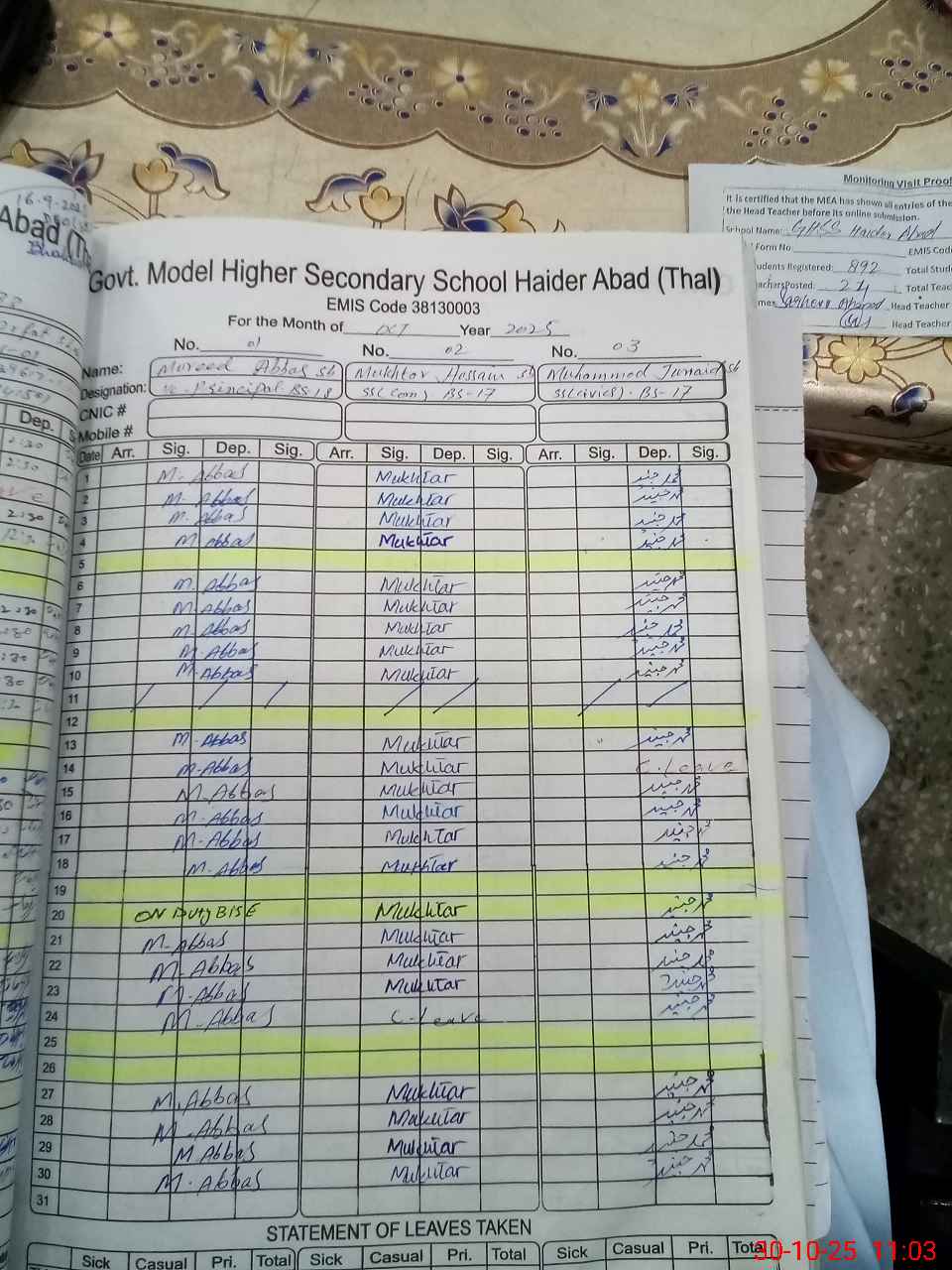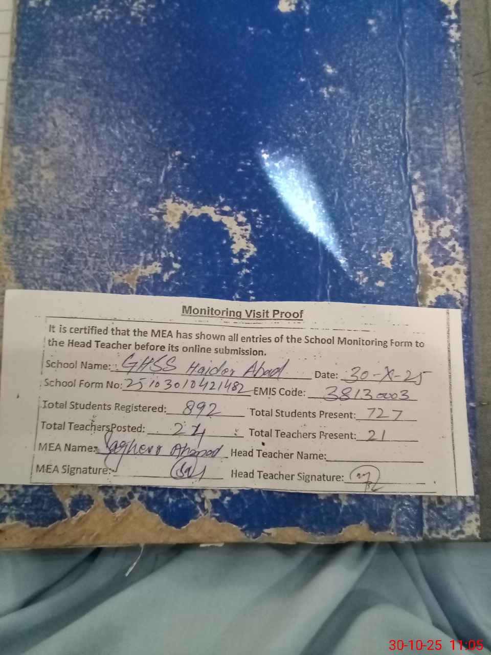 | EMIS Code: 38130003 | Name of School: GHSS HAIDER ABAD | |||