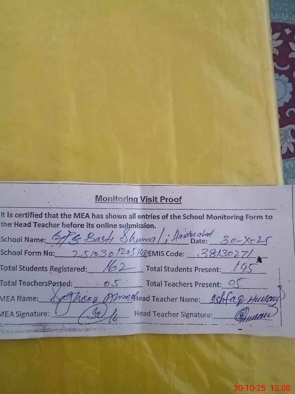 | EMIS Code: 38130271 | Name of School: GPS BASTI SHUMALI HAIDAR ABAD | |||