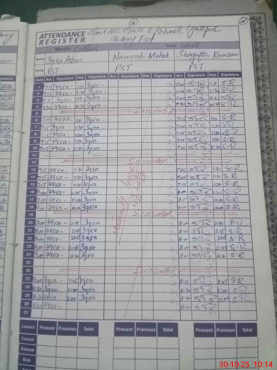 | 33**** | An**** Kh**** | ESE | Regular | 0 | 0 | 0 | 0 | 0 | 0 | 0 | 0 | 0 | Exam Duty |