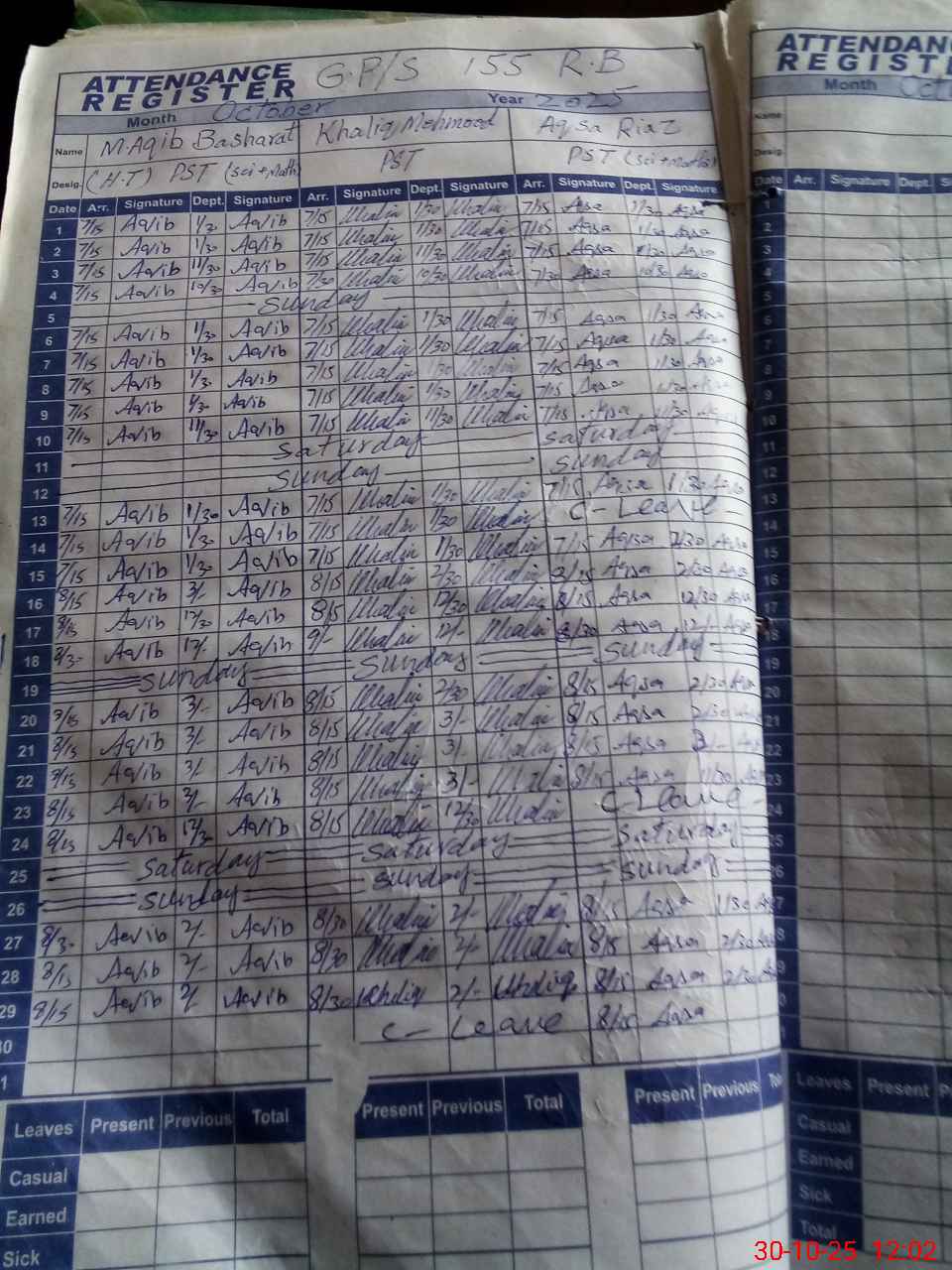 | 33**** | Mu**** Aq**** Bu**** | PST | Regular | 0 | 0 | 0 | 0 | 0 | 0 | 0 | 0 | 0 | Absent (Un-Authorized) |