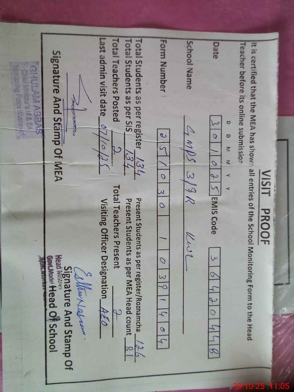 | EMIS Code: 36420448 | Name of School: GMPS 3/9-R, KACHA KHUH | |||