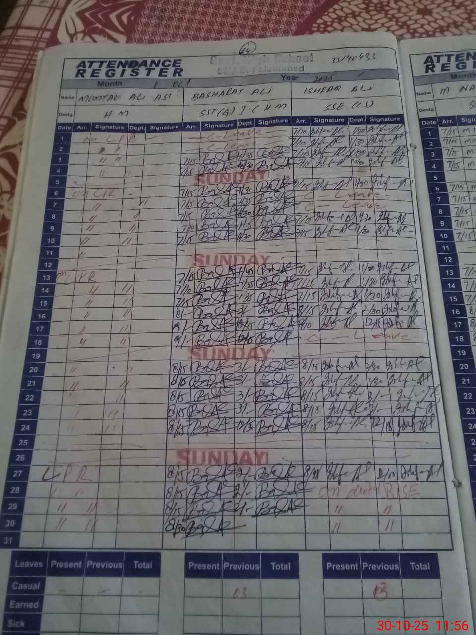 | 33**** | Is**** Al**** | ESE | Contract | 0 | 0 | 0 | 0 | 0 | 0 | 0 | 0 | 0 | Exam Duty |