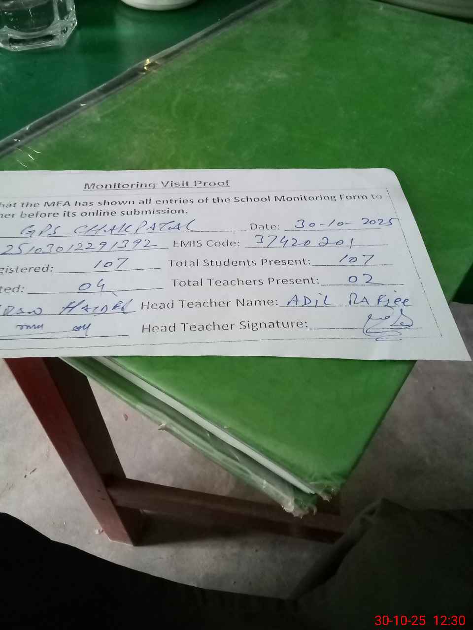 | Name: Gh**** Fi**** Designation: (School Headmaster's/Headmistress's) PST/PTC/ Phone/Cell Number: 03**** |