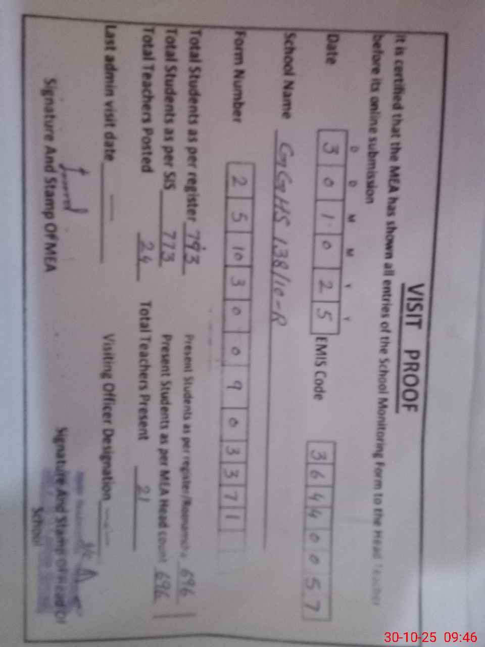 | Certified that this School was Inspected by the Undersigned MEA/DMO Today and the Information Stated Above is as Per Record. | |||||