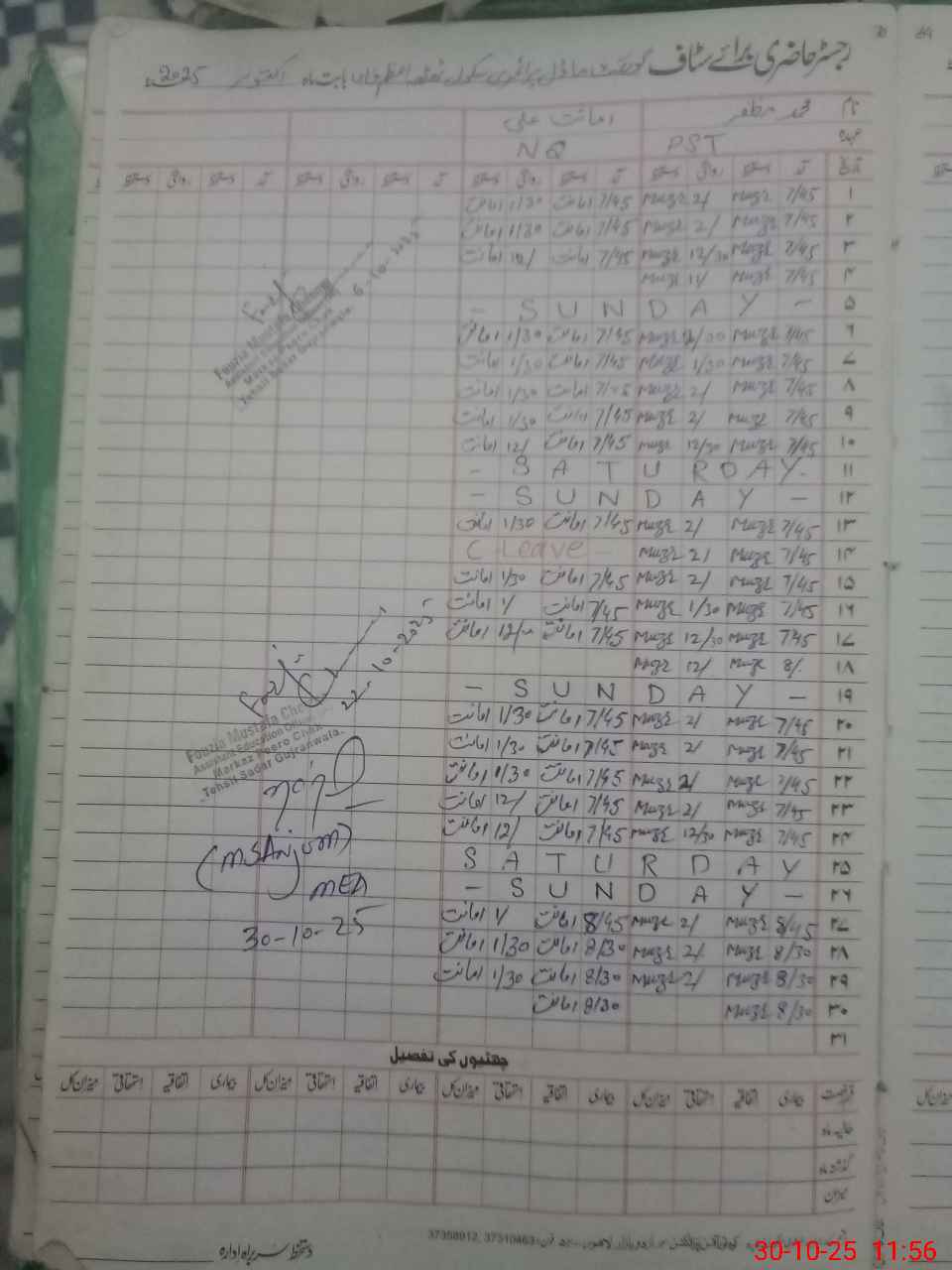 | Name: Mu**** Mu**** Designation: (School Headmaster's/Headmistress's) PST Phone/Cell Number: 03**** |
