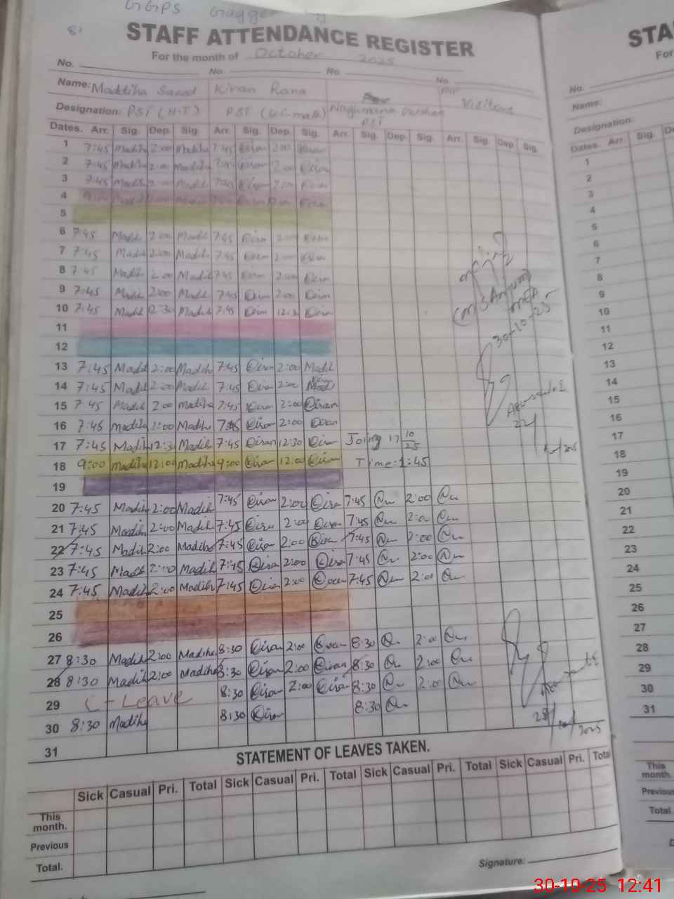 | Leave | Duty | Absent | Maternity | Medical | Ex- Pak |