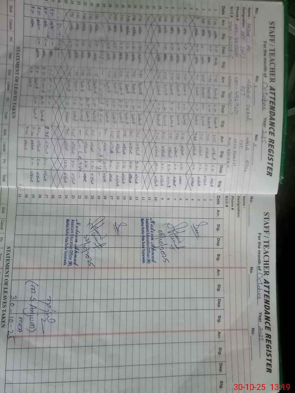 | Name: AK**** AL**** Designation: (School Headmaster's/Headmistress's) PST Phone/Cell Number: 03**** |