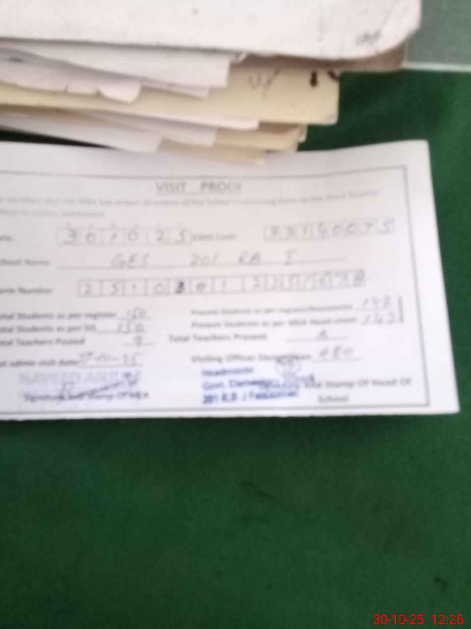 | Certified that this School was Inspected by the Undersigned MEA/DMO Today and the Information Stated Above is as Per Record. | |||||
