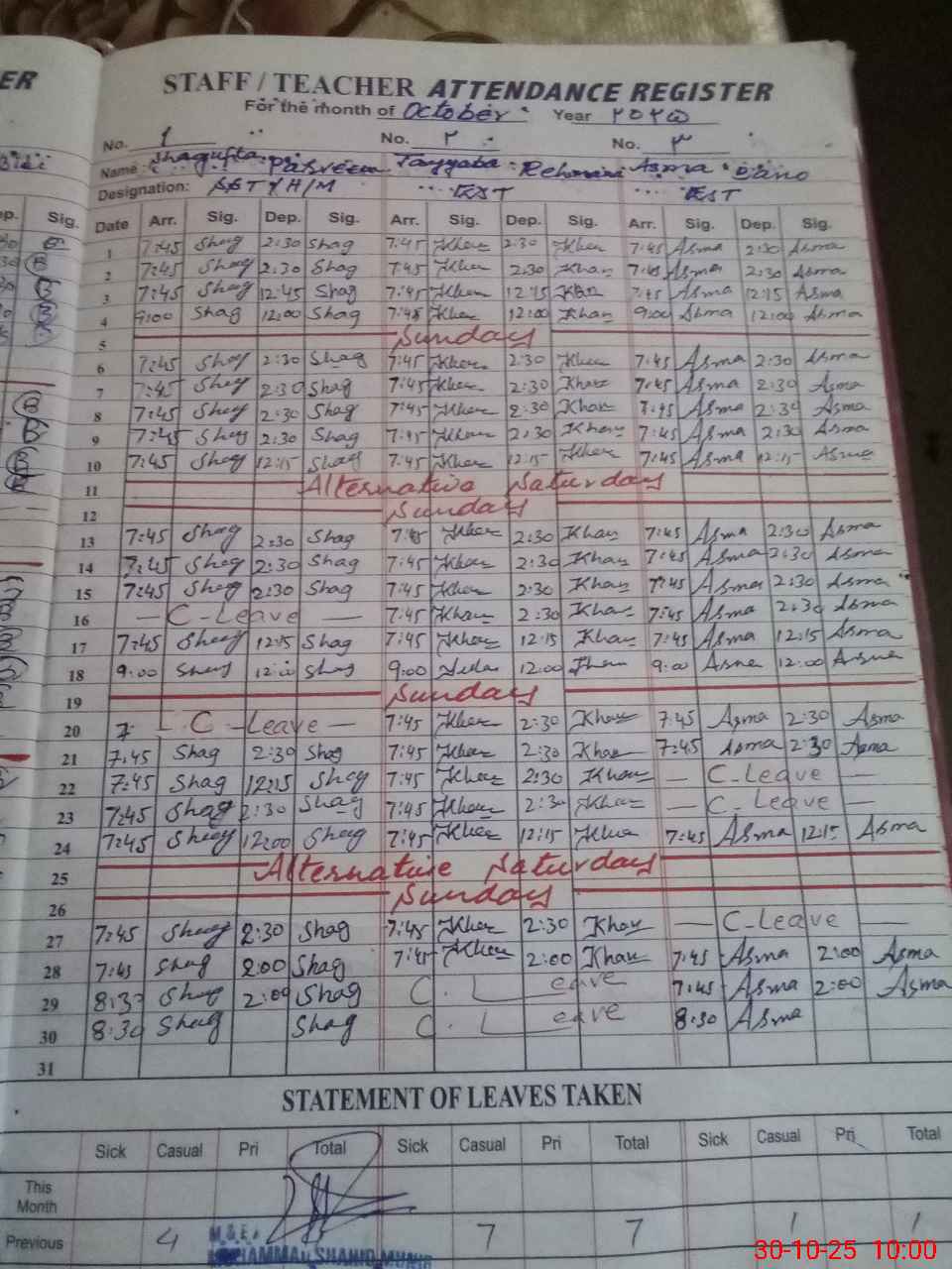 | Name: SH**** PA**** Designation: (School Headmaster's/Headmistress's) SST G Phone/Cell Number: 03**** |