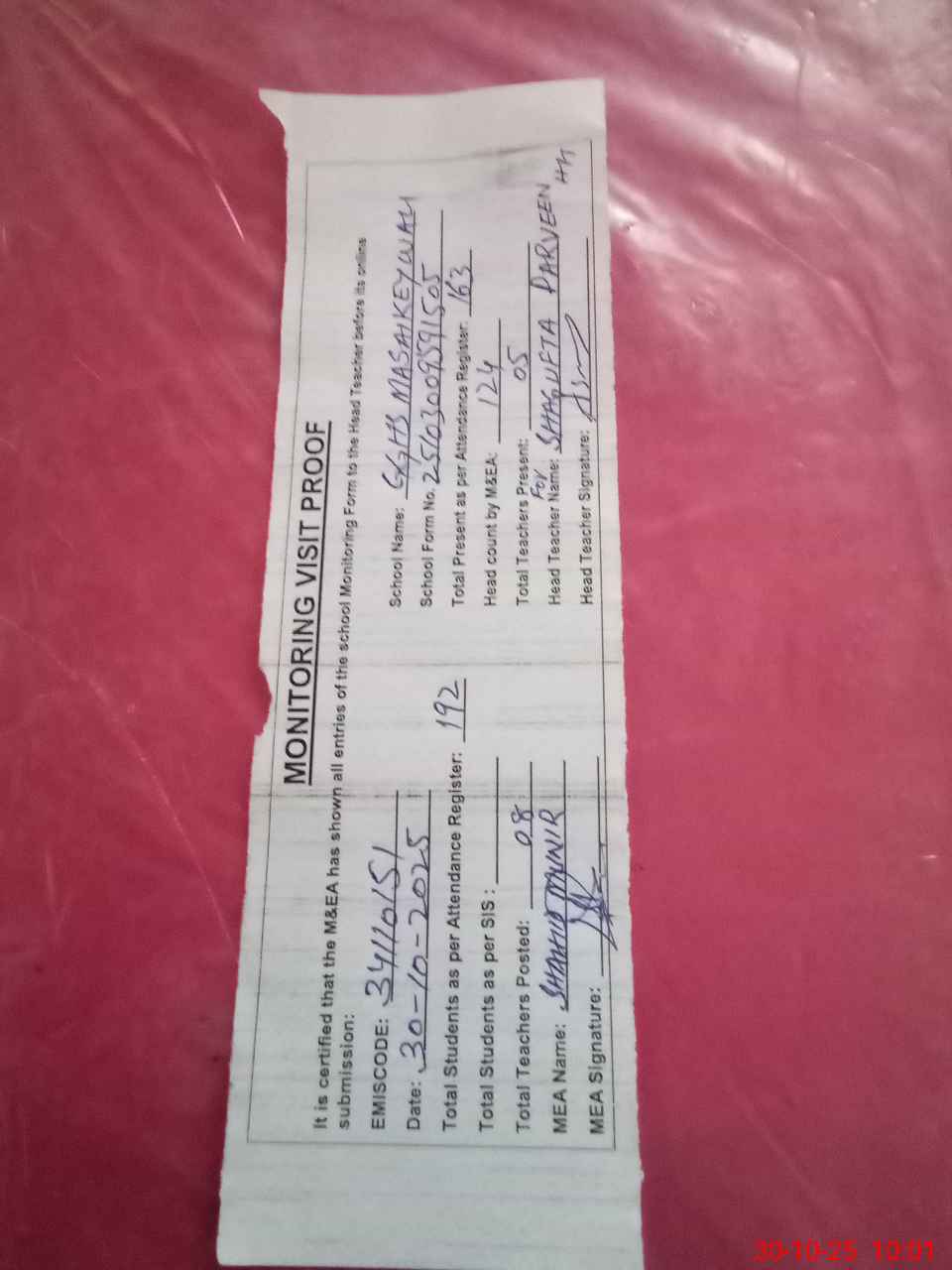 | EMIS Code: 34110151 | Name of School: GGHS MASAIKEY WALI | |||