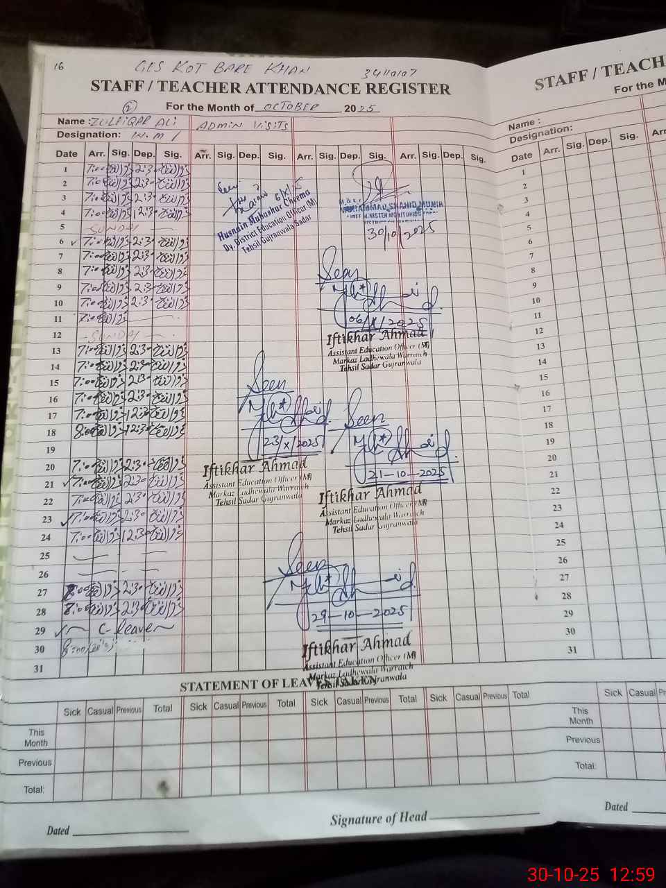 | Name: FA**** TA**** Designation: (School Headmaster's/Headmistress's) SST HM Phone/Cell Number: 03**** |