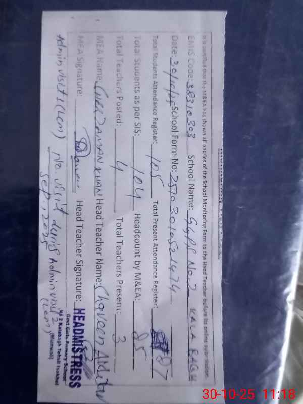 | EMIS Code: 38310303 | Name of School: GGPS NO. 2 KALA BAGH | |||