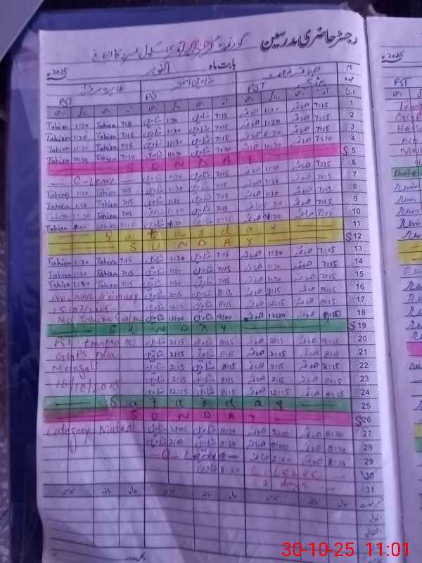 | CNIC | Full Name | Designation | R/C | Absence During Last Calender Month |