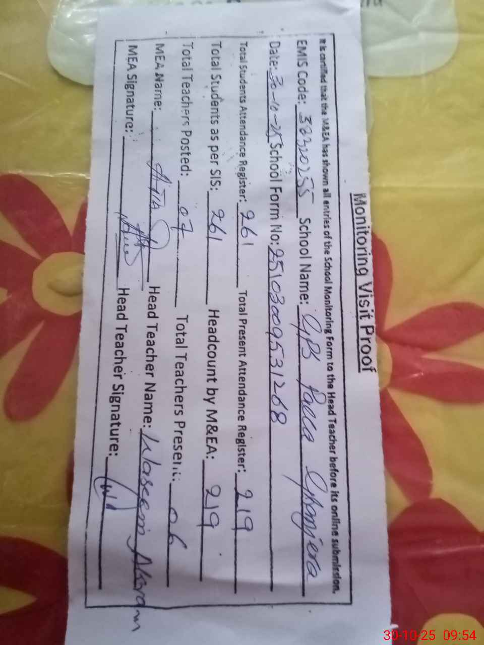 | EMIS Code: 38320255 | Name of School: GPS PACCA GHANJERA | |||