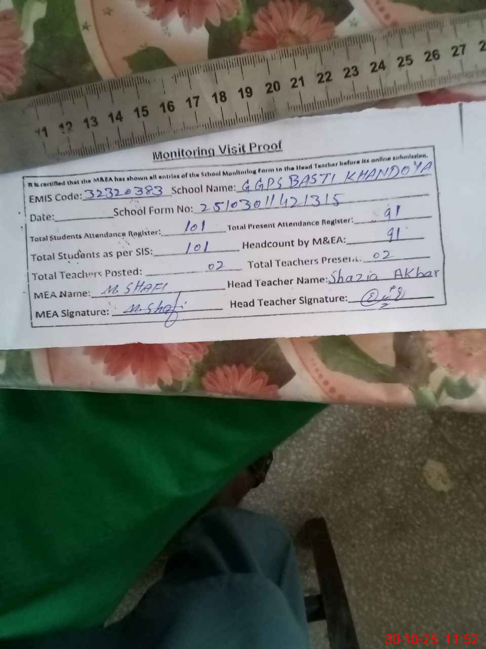 | EMIS Code: 32320383 | Name of School: GGPS BASTI KHANDOYA | |||