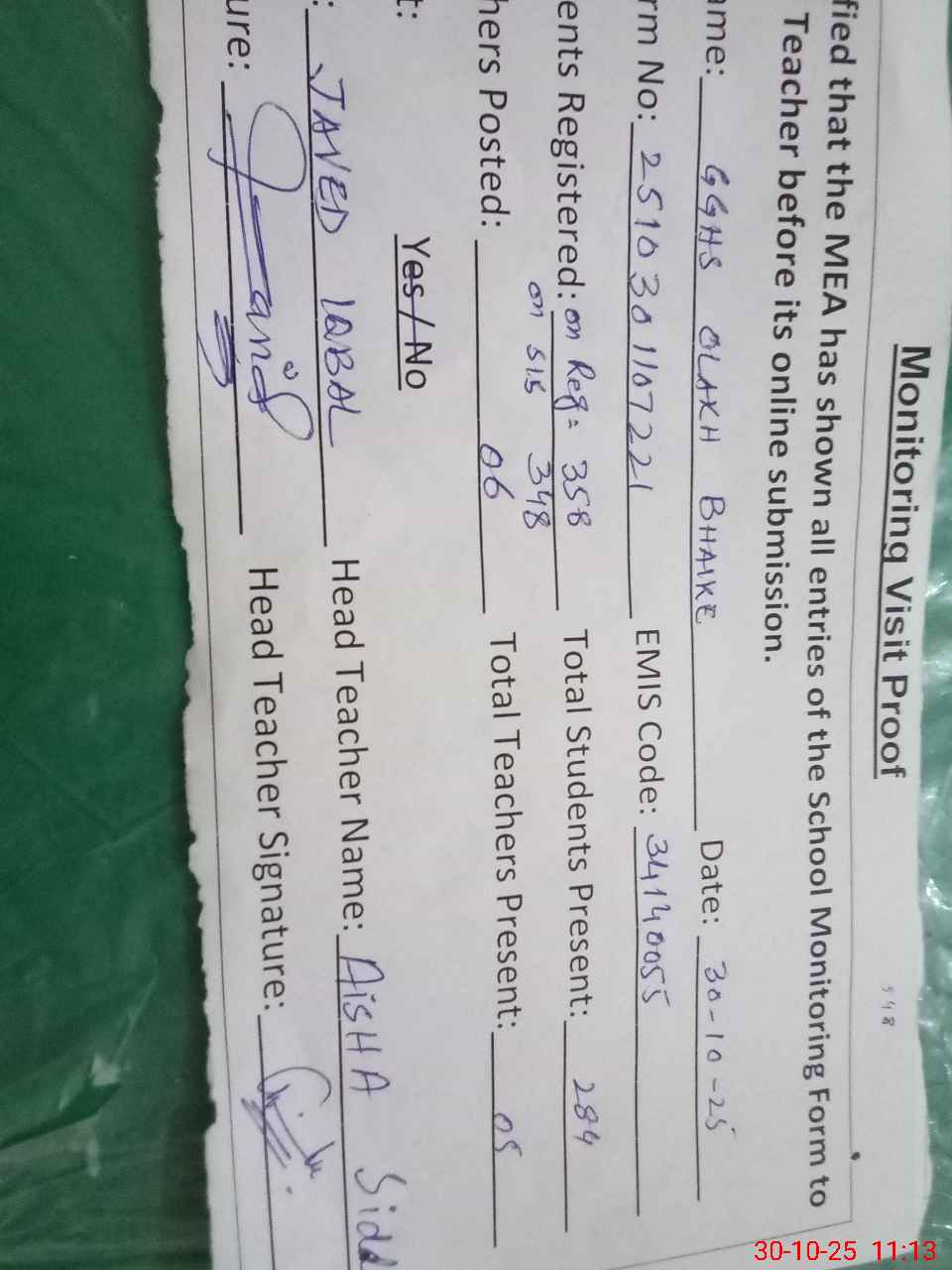 | EMIS Code: 34140055 | Name of School: GGHS OULAKH BHAIKE | |||