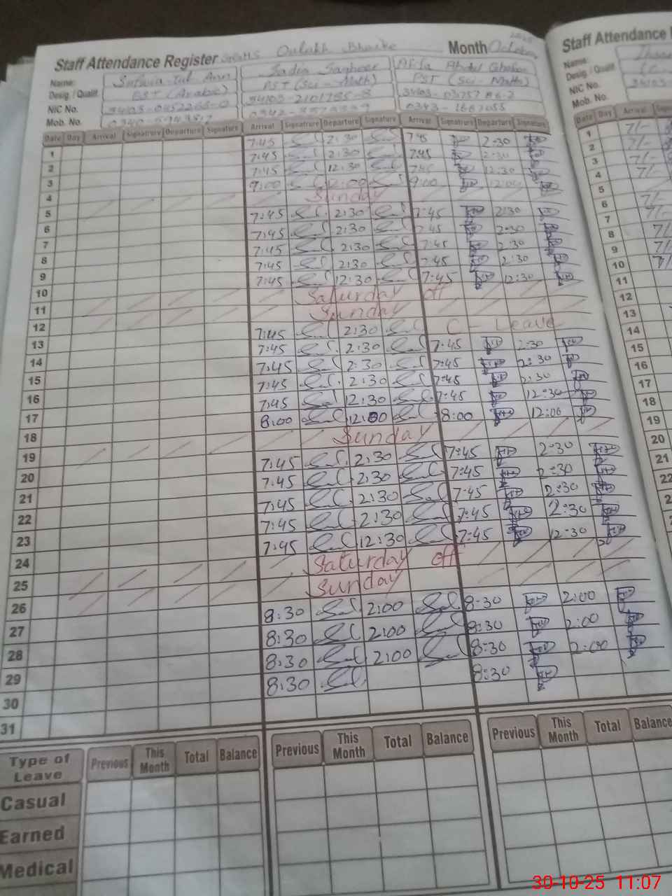| 34**** | Su**** Tu**** An**** | Regular | 0 | 0 | 18 | 0 | 0 | 0 | 0 | 0 | 0 | Absent (Un-Authorized) | |
