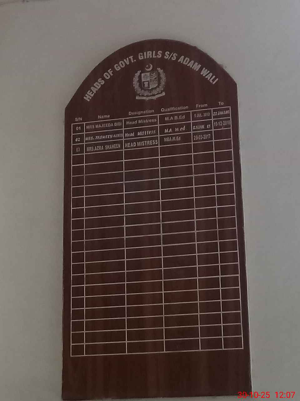 | Certified that this School was Inspected by the Undersigned MEA/DMO Today and the Information Stated Above is as Per Record. | |||||