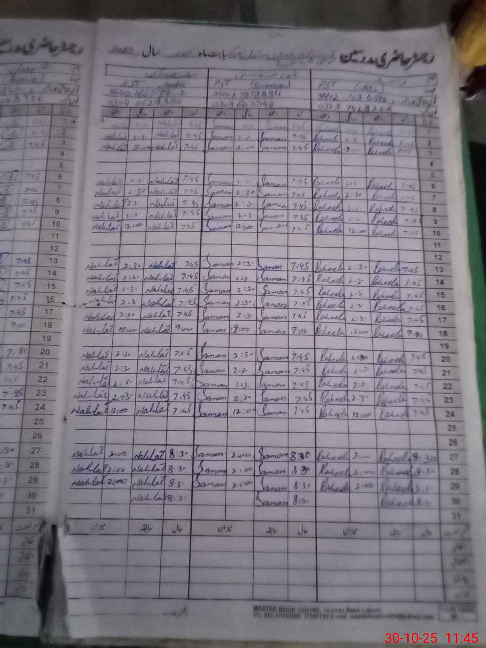 | CNIC | Full Name | Designation | R/C | Absence During Last Calender Month |