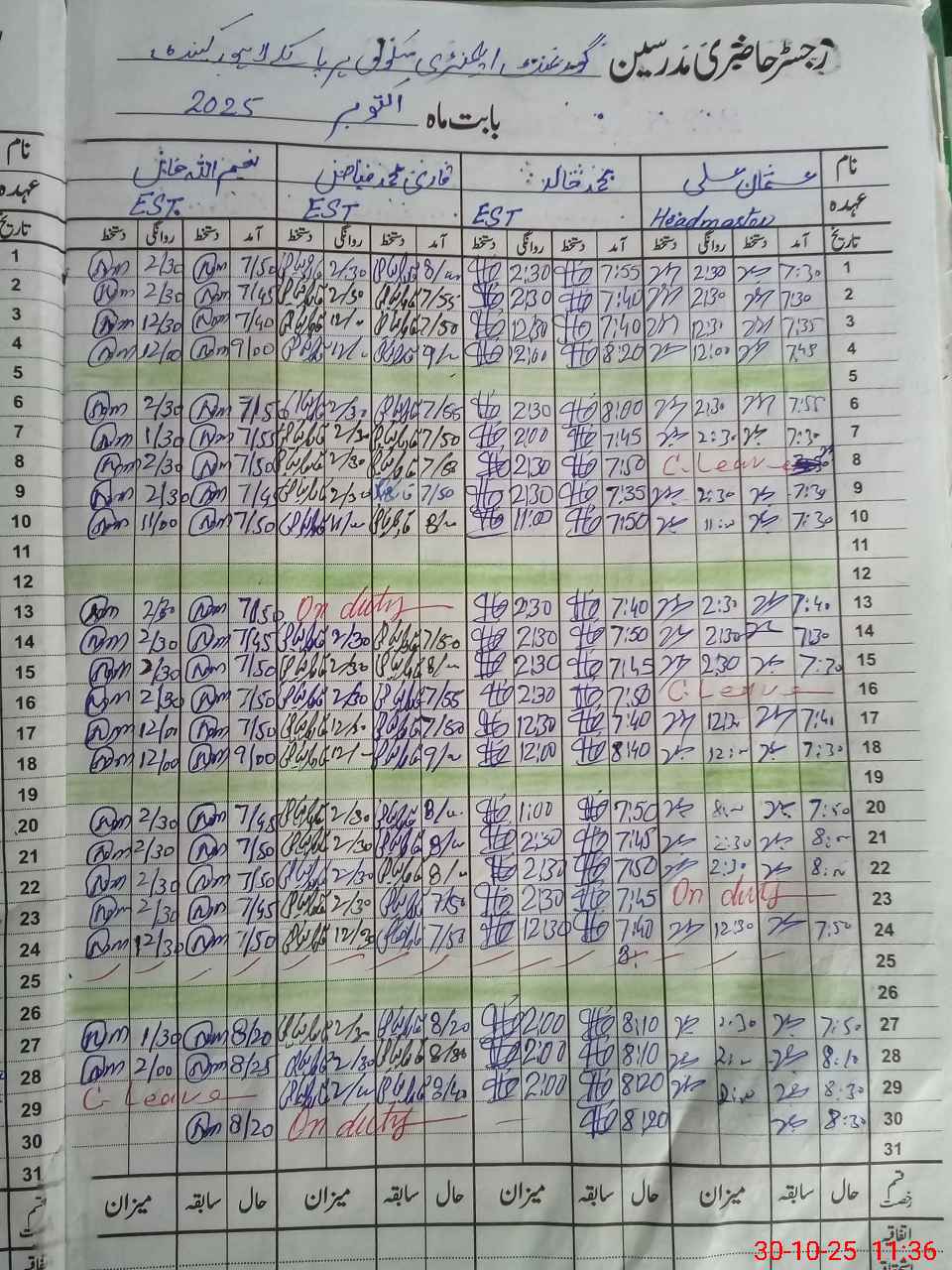 | CNIC | Full Name | Designation | R/C | Absence During Last Calender Month |