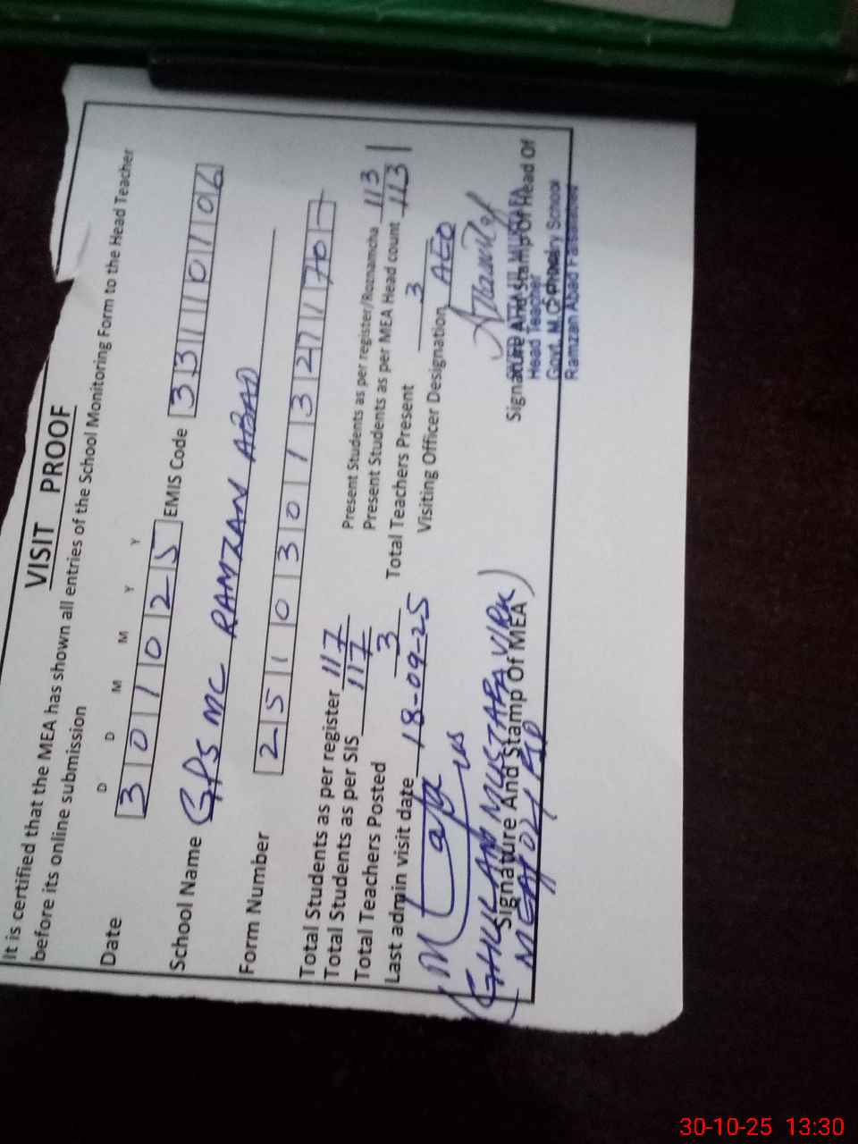 | EMIS Code: 33110106 | Name of School: GPS MC RAMZAN ABAD | |||