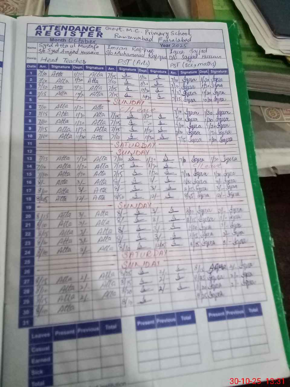 | Name: Sy**** At**** ulMu**** Designation: (School Headmaster's/Headmistress's) PST/PTC/JV Phone/Cell Number: 03**** |