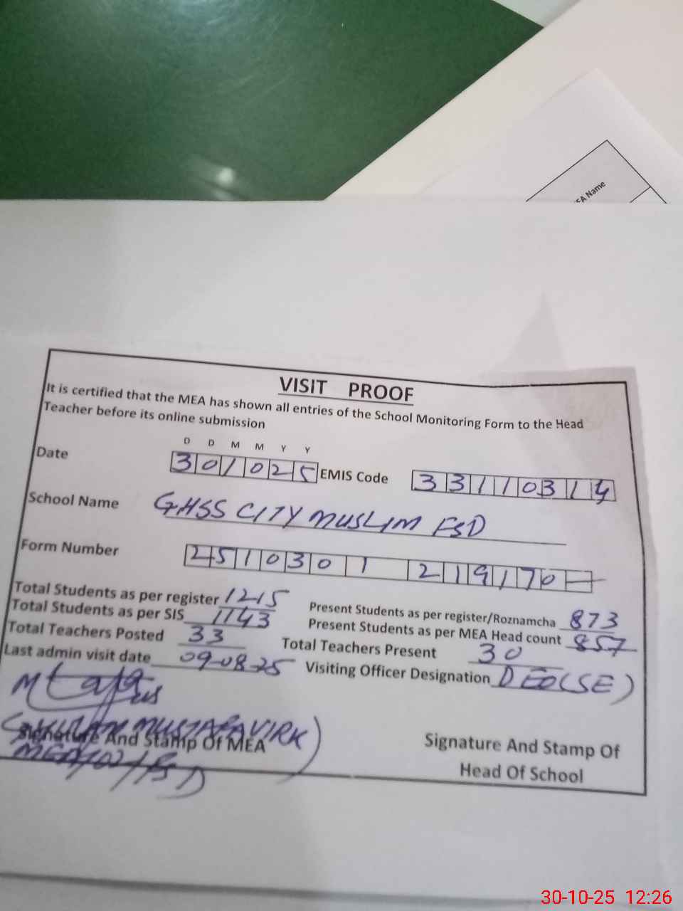 | EMIS Code: 33110314 | Name of School: GHSS CITY MUSLIM FSD | |||