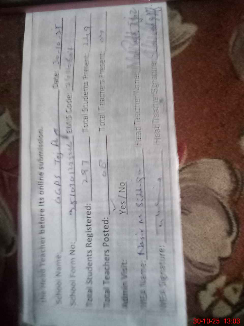 | Name: Ma**** Ij**** Designation: (School Headmaster's/Headmistress's) PST Phone/Cell Number: 03**** |