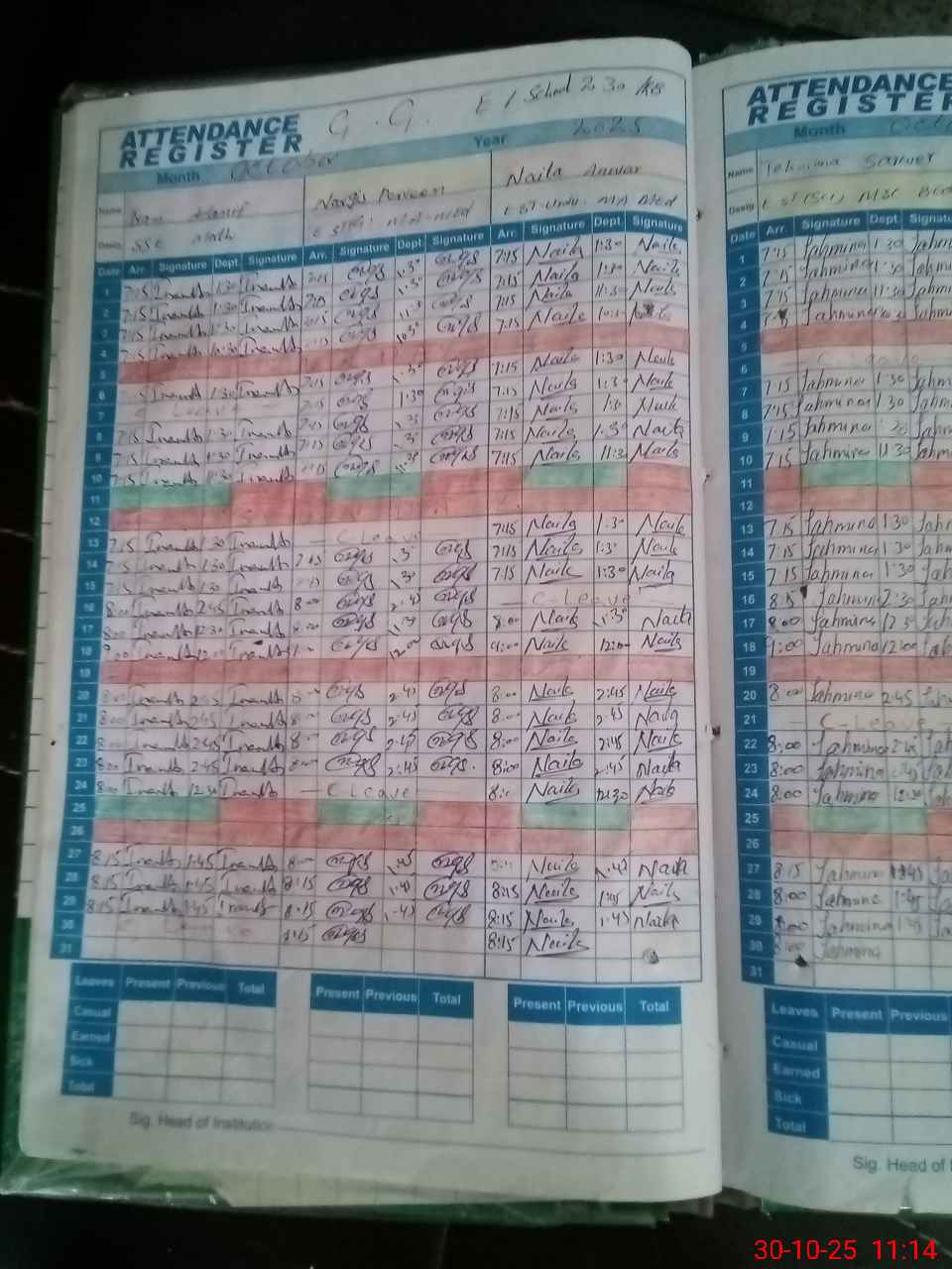 | CNIC | Full Name | Designation | R/C | Absence During Last Calender Month |