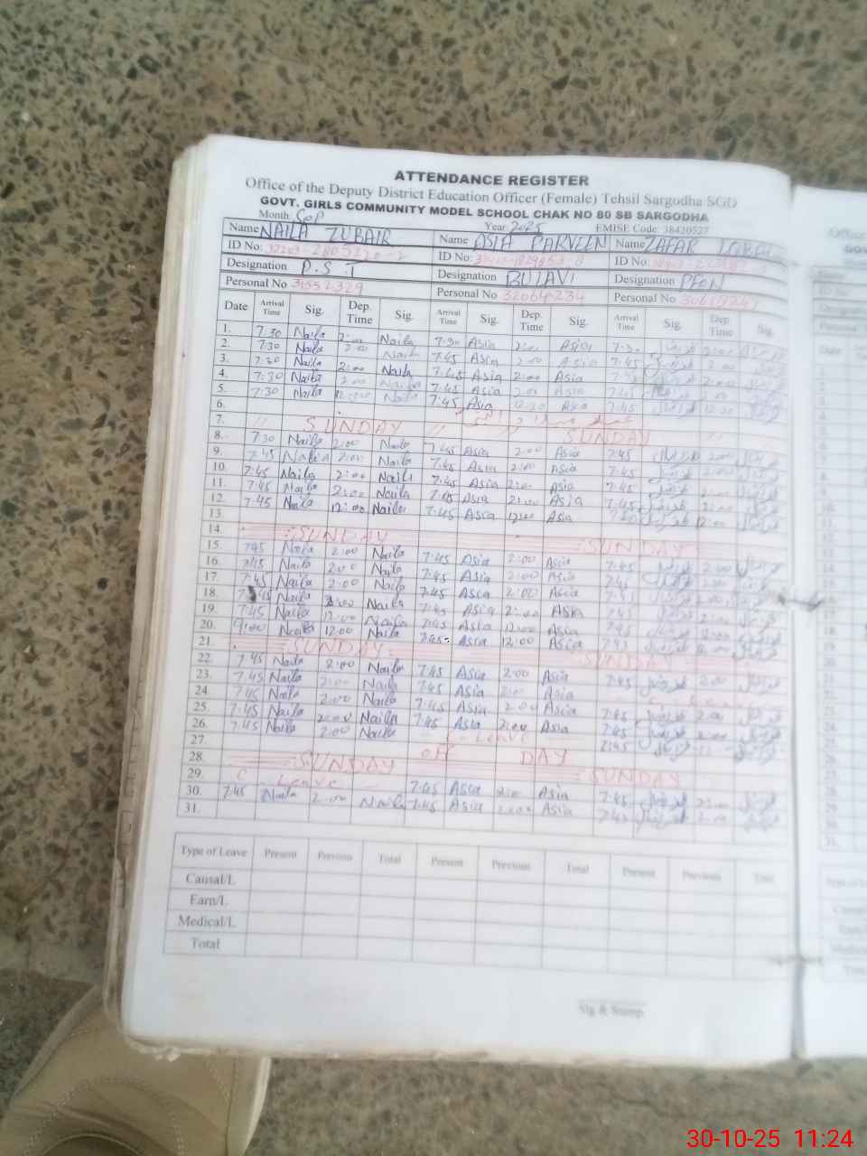 | Leave | Duty | Absent | Maternity | Medical | Ex- Pak |