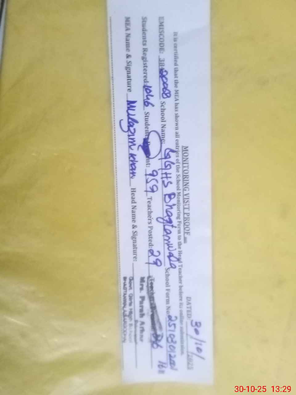 | Certified that this School was Inspected by the Undersigned MEA/DMO Today and the Information Stated Above is as Per Record. | |||||