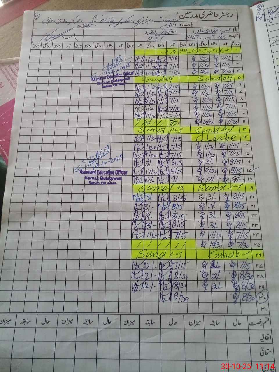 | CNIC | Full Name | Designation | R/C | Absence During Last Calender Month |