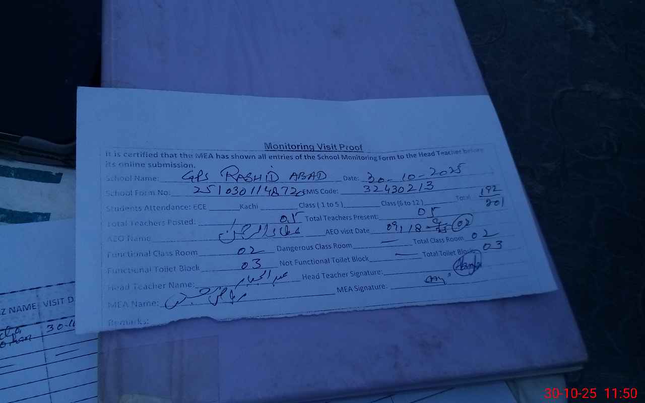| EMIS Code: 32430213 | Name of School: GPS RASHID ABAD | |||