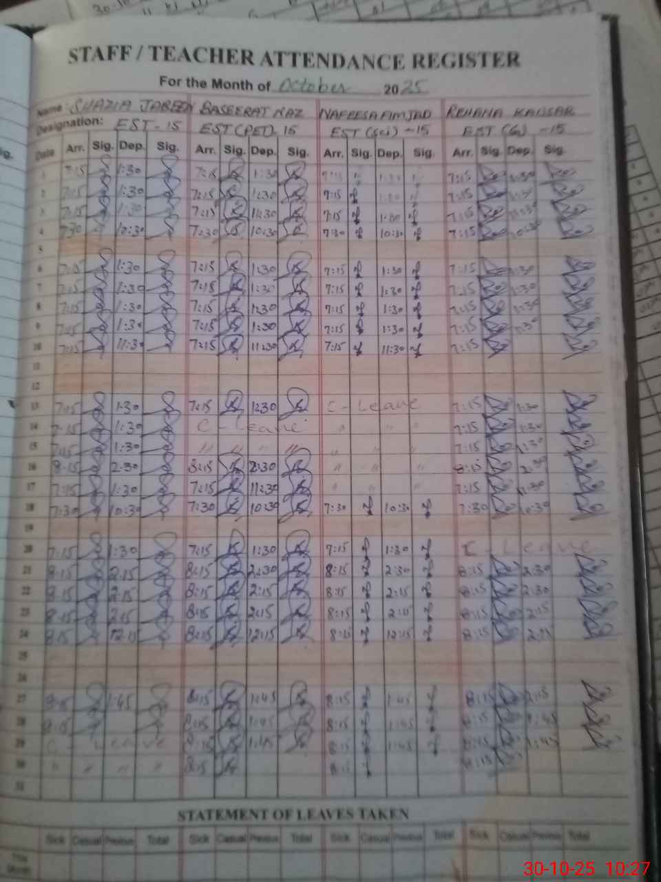 | Remarks (Use Separate Page if Required): Nsb record is not shown and record is not updated on sis and pmiu app Teacher Ambreen Asad is shown on pmiu app but she is terminated for last two years | |||||
