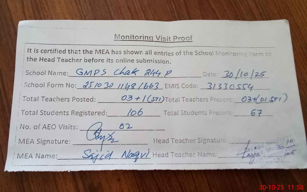 | EMIS Code: 31330554 | Name of School: GMPS CHAK 244/P | |||