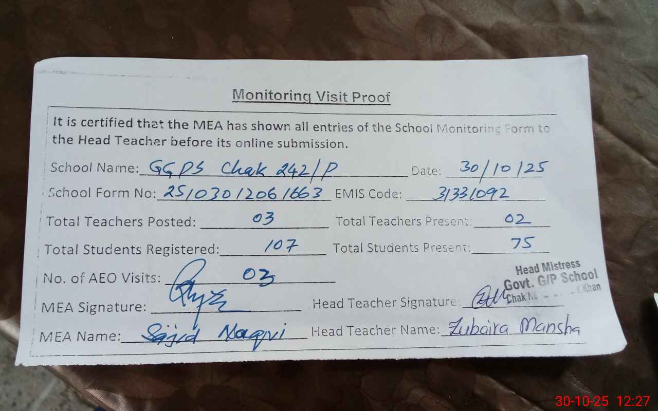 | EMIS Code: 31331092 | Name of School: GGPS CHAK 242 P | |||