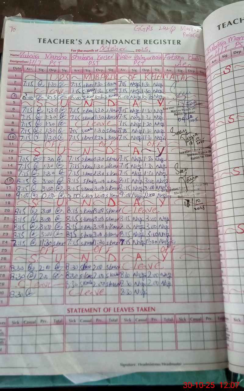 | Name: Zu**** Ma**** Designation: (School Headmaster's/Headmistress's) P S T Phone/Cell Number: 03**** |