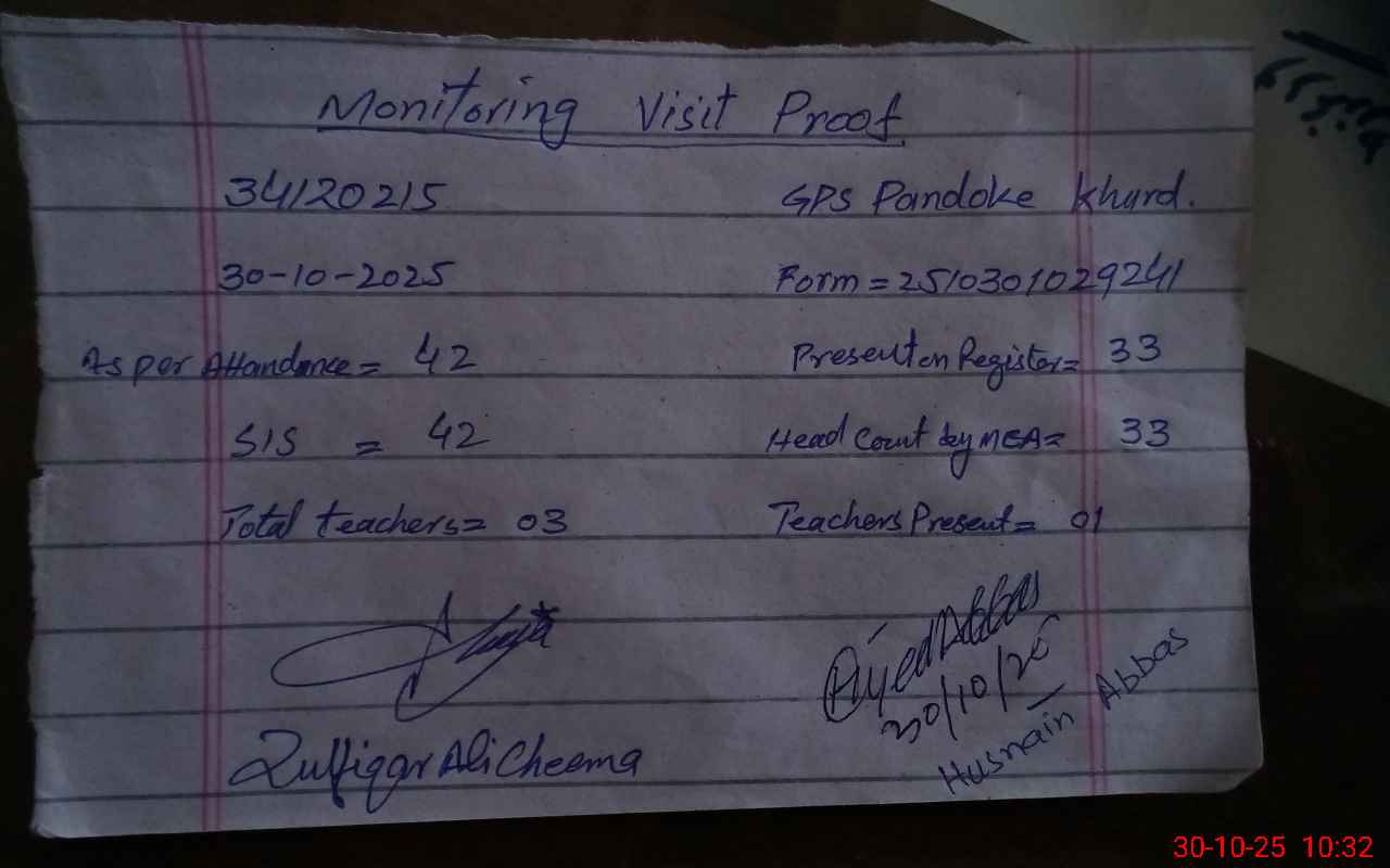 | EMIS Code: 34120215 | Name of School: GPS PANDOKE KHURD | |||