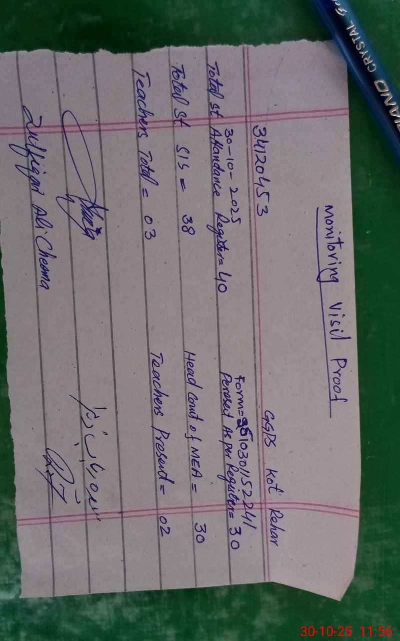 | EMIS Code: 34120453 | Name of School: GGPS KOT REHAR | |||
