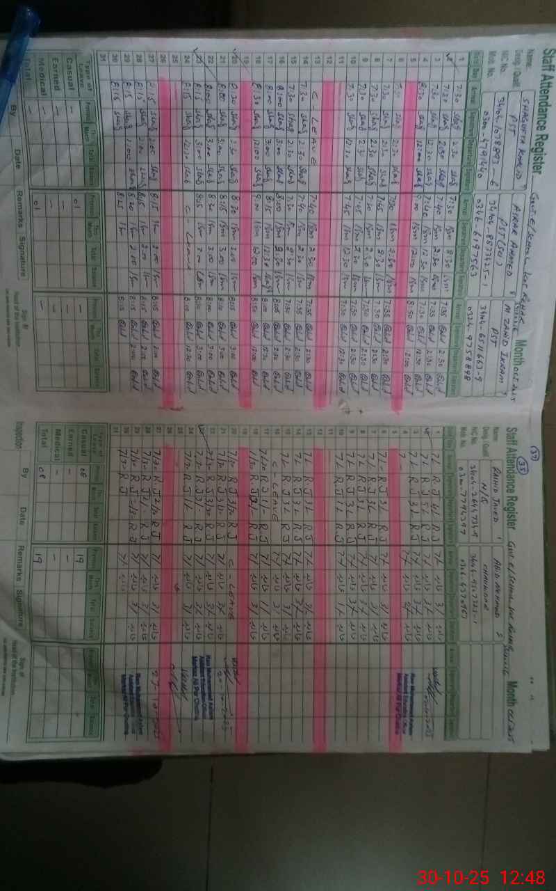 | CNIC | Full Name | Designation | R/C | Absence During Last Calender Month |