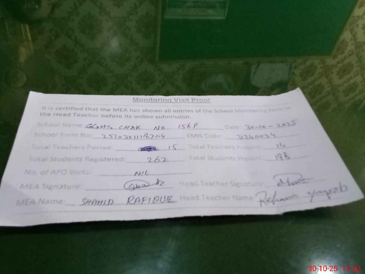 | EMIS Code: 31340034 | Name of School: GGHS CHAK NO. 156/P | |||
