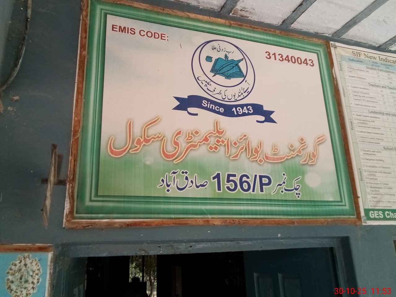 | EMIS Code: 31340043 | Name of School: GES CHAK NO 156/P SADIQABAD | |||