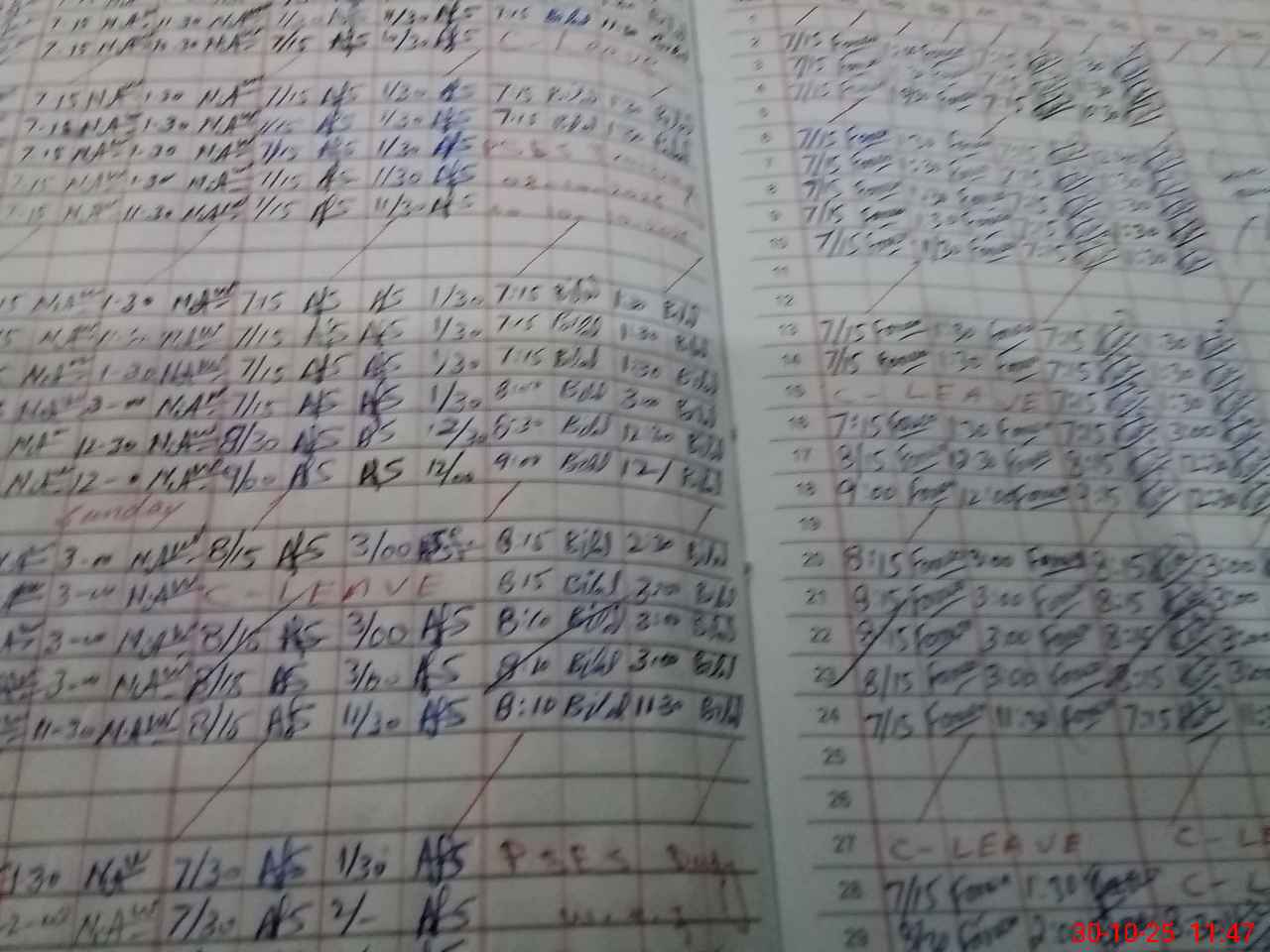 | Leave | Duty | Absent | Maternity | Medical | Ex- Pak |