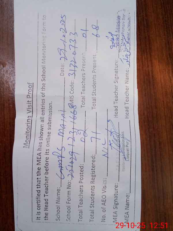| EMIS Code: 31320733 | Name of School: GMPS MAINI | |||