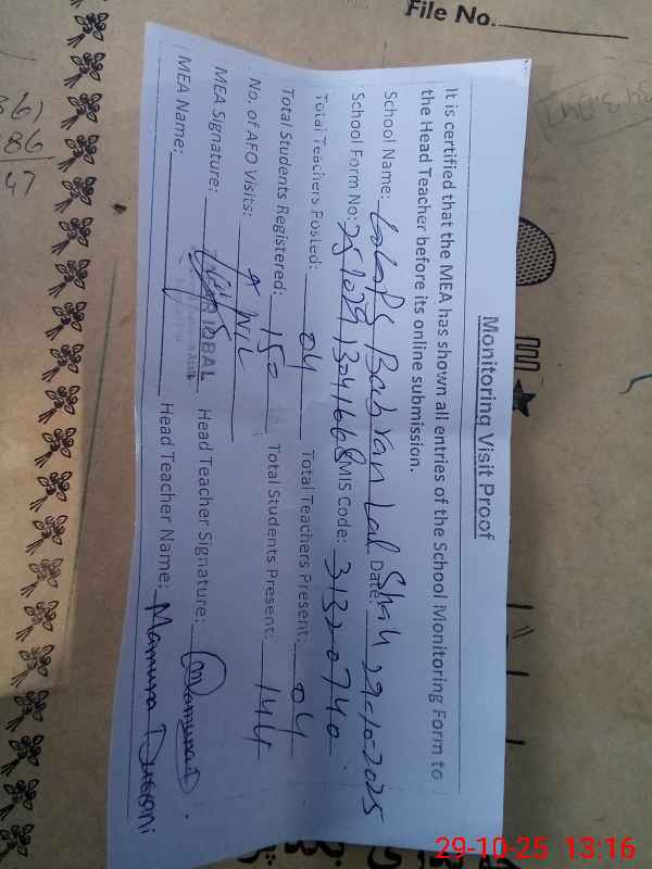 | Attendance Register | Head Teacher | MEA with School | Visit Proof |